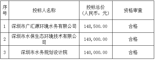 金年会科技生态园区项目水土保持服务于2019年5月14日在深圳市建设工程材料设备询价采购网络服务平台(网址:http://www.51xjcg.com/)进行公开询价采购,招标控制价为150,000.00元。在投标截止时间2019年5月23日11时内共有3家单位递交了投标文件。经评标委员会根据招标文件既定评标办法(经评审的最低投标价法)评议,现中标结果已报东部公司招标工作小组定标会议确认,特此公示如下: