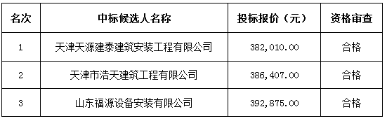 中 标 人:天津天源建泰建筑安装工程有限公司。