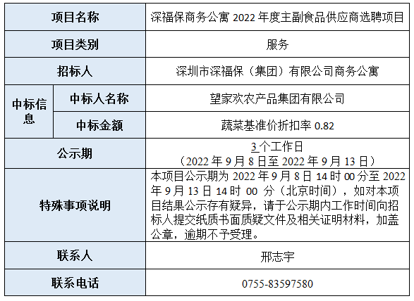 金年会商务公寓2022年度主副食品供应商选聘项目已完成评审,现将本项目评审的相关情况及结果进行公示,具体内容如下: