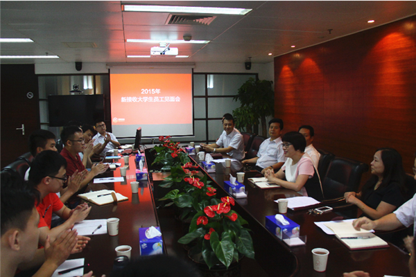 7月22日上午,集团在22楼会议室召开2015年接收应届毕业生见面会暨新员工岗前培训启动会。会议由集团党委副书记、纪委书记谢涛主持,集团董事长李富川、监事会主席孔星民、副总经理蒋云凤、财务总监雷冬梅等领导参加见面会并与应届毕业生进行了亲切交流。李富川董事长希望应届毕业生尽快适应从学生到员工的转变,培养良好的工作及生活习惯,并提出三点要求:一是做人要真诚;二是做事要勤奋;三是要培养深度思考的习惯。