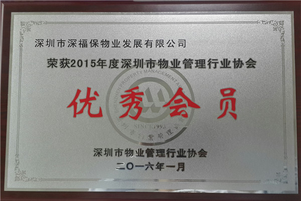 1月8日,深圳市物业管理协会召开会员代表大会,对2015年度优秀会员单位进行表彰。物业公司光荣上榜,被授予“优秀会员”称号,成为全市90家获此称号的物管企业之一,也是继2012年、2014年后第三次获此殊荣。