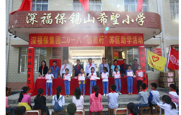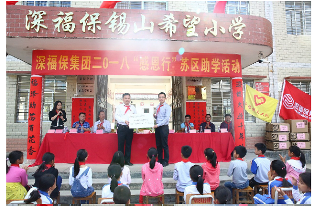 10月12日,集团副总经理熊海明带领集团党员员工代表联合腾邦集团前往河源紫金苏区镇金年会锡山希望小学,开展了一场温暖的公益捐助活动,金年会集团党委、腾邦集团党委、苏区镇党委、金年会锡山希望小学师生代表等100多人参加了活动。本次“感恩行”助学支教活动,金年会集团向苏区镇金年会锡山希望小学捐赠了校服、文具等一批文教用品,并向苏区镇50名受助学生捐赠2017-2018年度助学金共计8.8万元。