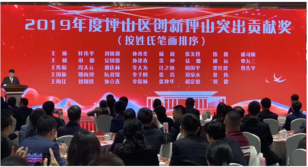 生物医药创新产业园区的深圳市原力生物科技有限公司创始人孙勇奎、深圳市华先医药科技有限公司总经理叶伟平、深圳无微华斯生物科技有限公司总经理王国新、深圳普瑞金生物药业有限公司创始人栗红建、深圳市盛波尔生命科学技术有限责任公司总经理郭健等一批企业家获得“2019年度坪山区创新坪山突出贡献奖”。