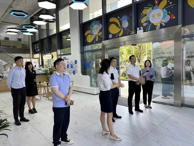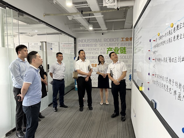 5月9日上午,深圳市公共就业服务中心副主任黄长安、福田区人力资源局副局长刘志明调研走访金年会-启迪深港硬科技创新中心。