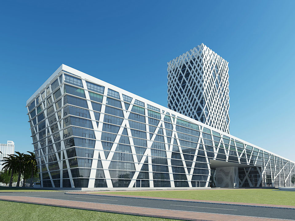 园区占地面积12.3万㎡,总建筑面积22万㎡,共10栋建筑。建成物业包括厂房、研发办公、公共平台、公共会议中心、食堂等生产研发办公和商务休闲空间。